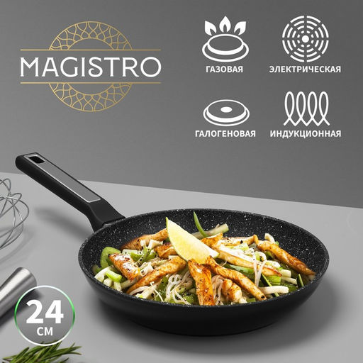 Сковорода Magistro Warrior, d=24 см, h=4.7 см, кованый алюминий, ручка софт тач, антипригарное покрытие, индукция, чёрная