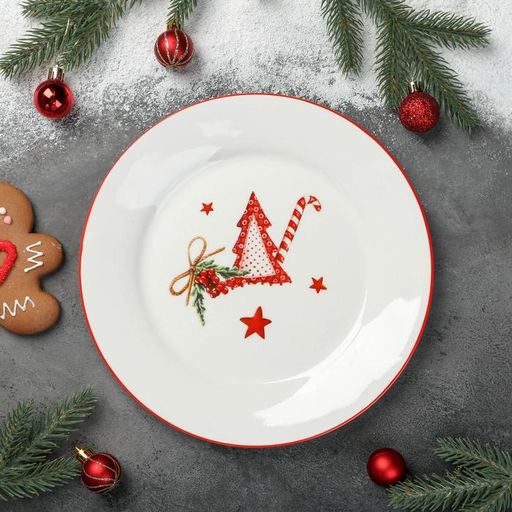 • Тарелка фарфоровая обеденная Доляна «Счастливого Нового Года», d=25,5 см