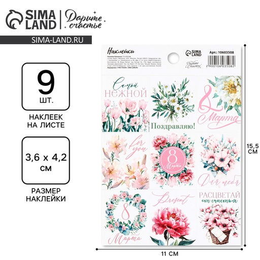 • Цена за 5 шт. Наклейки бумажные С 8 марта, 11?15.5 см