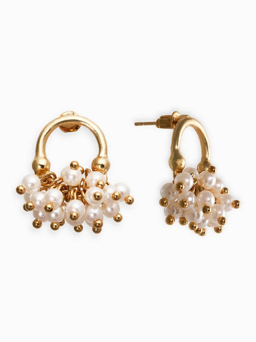 Серьги жемчуг «Виноград», белые в золоте