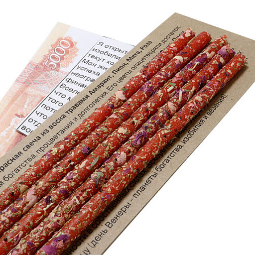 Мята покровительствует успеху в торговых делах, в партнерских взаимоотношениях, используется для повышения благосостояния, способствуют постепенному увеличению доходов или капитала. Красная свеча символизирует огонь, факел, пламя страсти, прорыва и победы. Периоду застоя приходит конец. Она обеспечивает достижение поставленных целей без особых проблем, придаёт уверенности в собственных силах. Вскоре преграды будут пройдены и свет озарит ясный прямой путь. Зажигать свечу в пятницу (день Венеры планеты богатства, изобилия и везения).