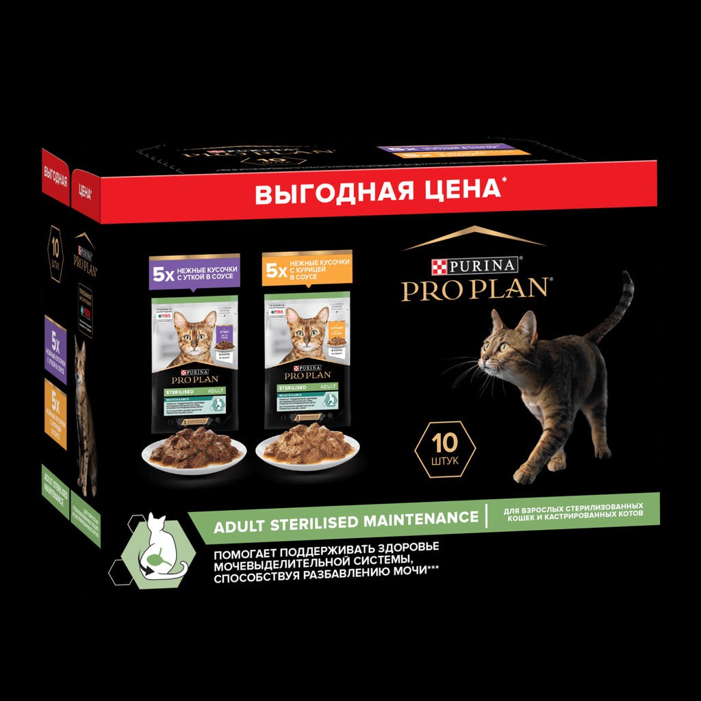 Набор паучей для кастрированных кошек 10 шт (утка в соусе, курица в соусе) 12518357/12530147