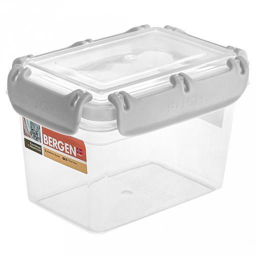 • "Bergen" Контейнер для продуктов пластмассовый 0,7л, 14,5х10,3х9,8см, с защелками, пепельный жемчуг, подходит для СВЧ (Россия)