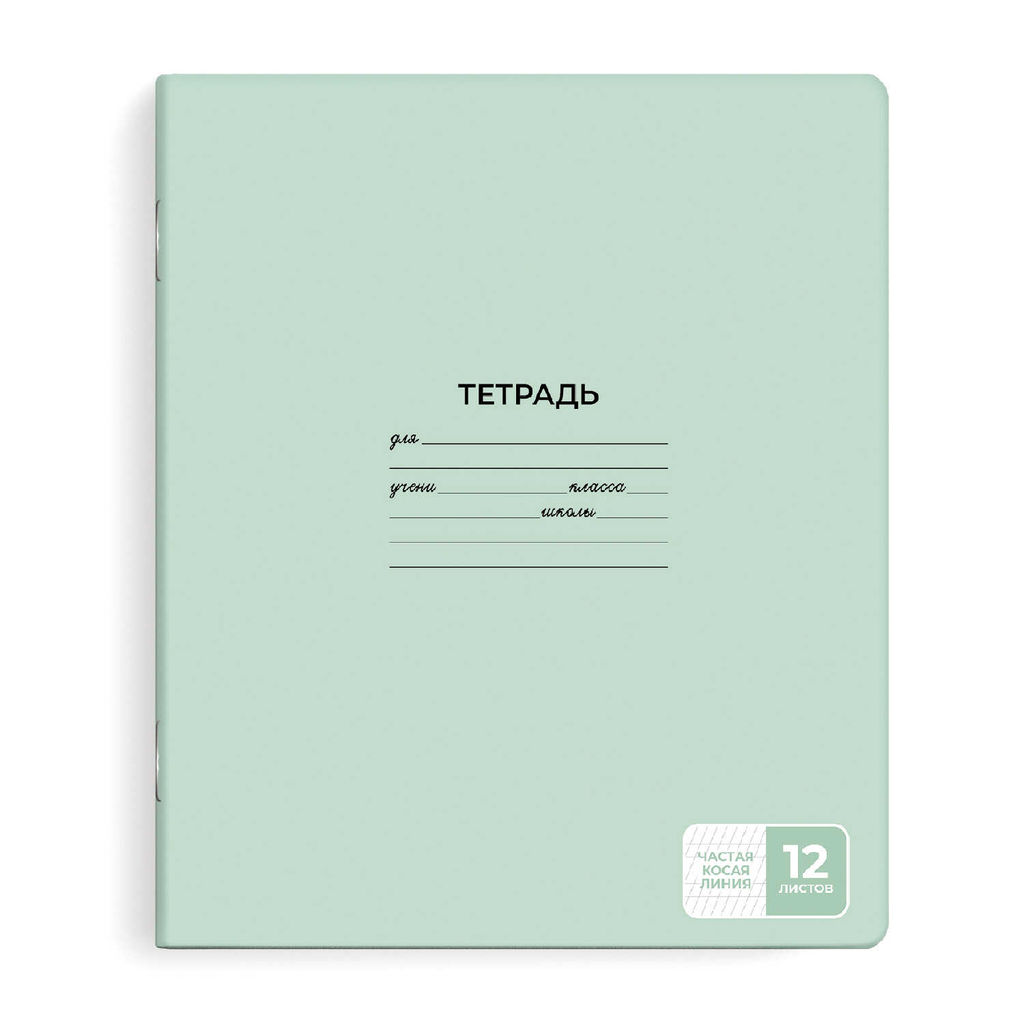 Тетрадь школьная ученическая, 12 л, косая частая линия, арт. 66736/ 20 СВЕТЛО-ЗЕЛЁНЫЙ /А5+, мягкий переплёт (2 скобы), мелованный картон 190 г/м?,