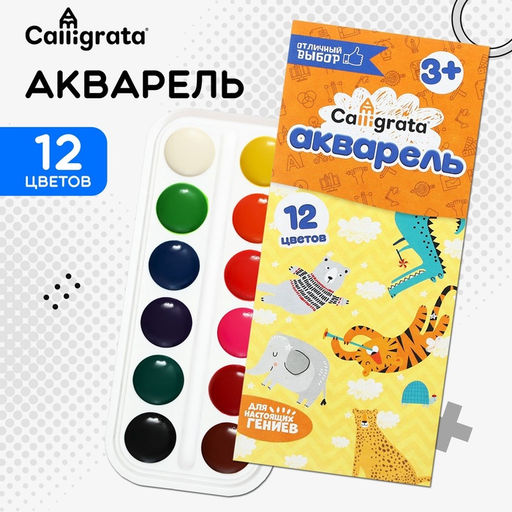 Набор акварельных красок в картонной упаковке. Включает 12 насыщенных цветов, подходит для творчества, обучения и художественных экспериментов. Удобный формат и качественная пигментация делают набор универсальным выбором для детей и взрослых.Особенности набора12 цветов в картонной палитре — компактно и практично.Без кисти — используйте свои инструменты для рисования.Яркие пигменты для создания насыщенных оттенков.Для кого этот набор?Набор акварели идеален для школьников, начинающих художников и тех, кто ценит удобство. Картонная упаковка делает его легким и мобильным — берите с собой на уроки, в поездки или на природу. Краски легко смешиваются, помогая создавать новые цвета и оттенки.Почему выбирают эту акварель?Экономичный расход благодаря высокой концентрации пигментов.Простота использования — не требует специальной подготовки.Экологичная картонная упаковка, которая легко утилизируется.Трещина на акварели не является браком. Акварель трескается из-за испарения воды, которая была в составе краски. Чтобы восстановить рабочие свойства краски, необходимо восполнить нехватку жидкости Количество цветов: 12. Европодвес: Да. Вид упаковки: Коробка картонная. Кисть: Нет. Твёрдость: Полутвердая (Сухая). Штрихкод на единице товара: Да. Температурное ограничение транспортировки: Нет. Бесплатная доставка: Да. Наша разработка: Да. Примечание: Упаковка (подложка/пакет) может отличаться, в зависимости от партии.. Примечание: Выбор конкретных цветов и моделей не предоставляется. На фотографиях могут быть представлены не все варианты..