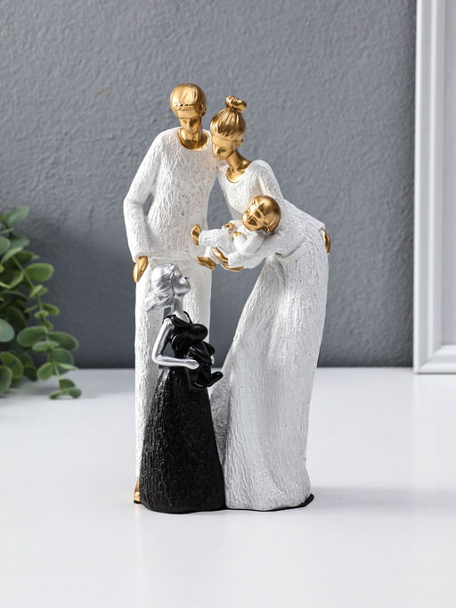 • Сувенир полистоун "Родители с детьми" бело-золотой 8,5х13х25 см
