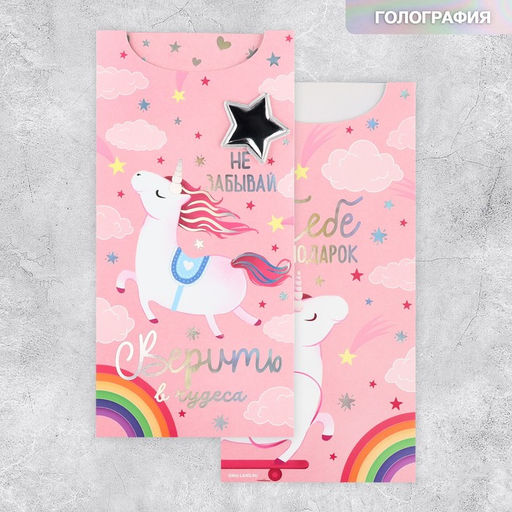 • Цена за 2 шт. Конверт для денег «Не забывай верить в чудеса», голография, 9.5×19.5 см
