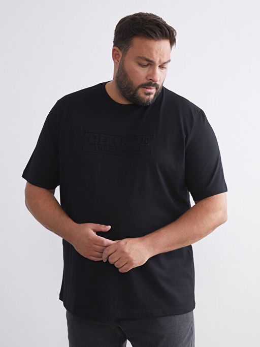 B?y?k Beden Kabartma Bask?l? Penye Erkek Ti??rt