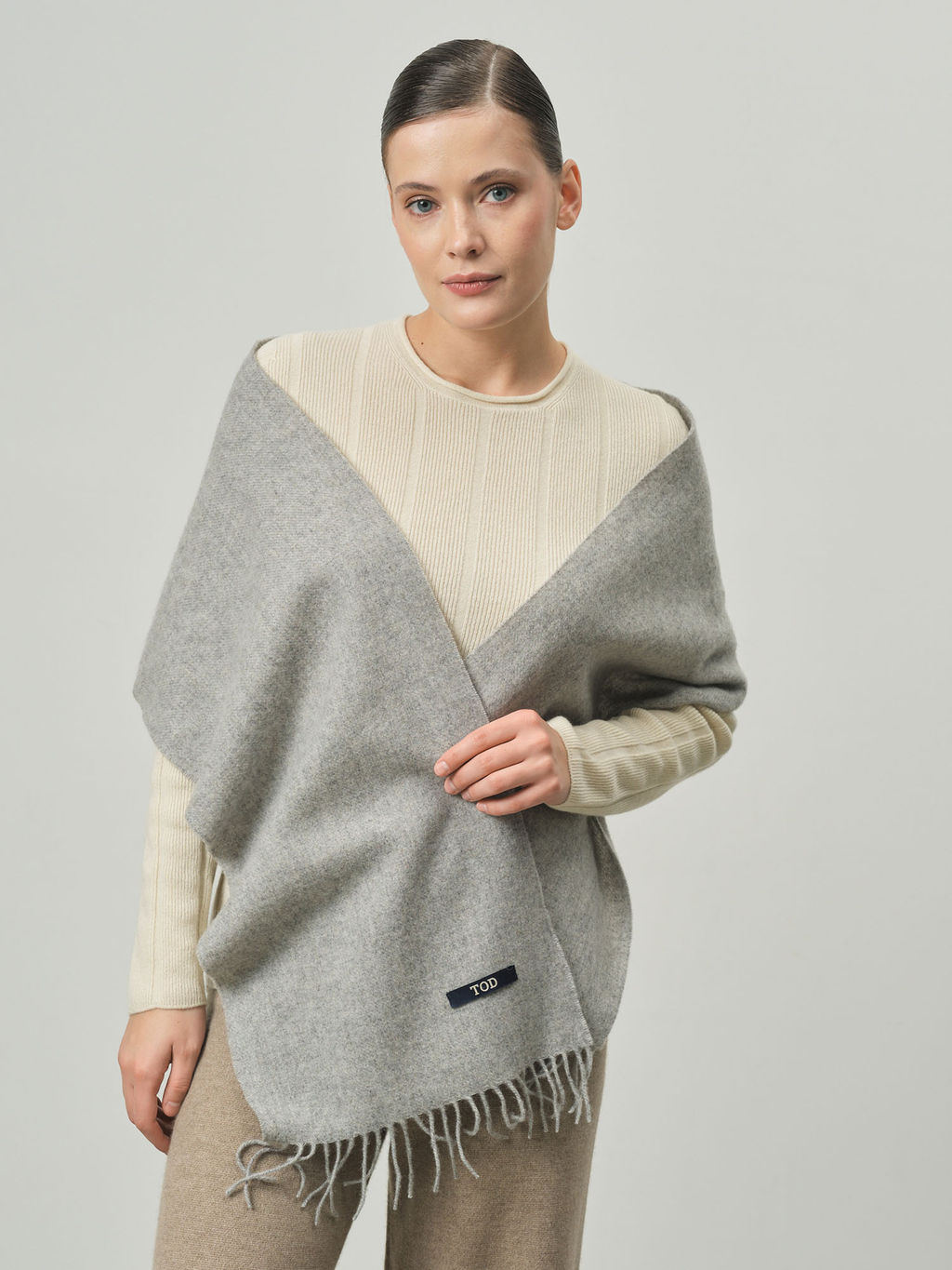 Универсальный шарф из 100% натуральной шерсти в изысканном сером цвете. Этот аксессуар станет идеальным дополнением к любому образу, сочетая элегантность и комфорт. Мягкий, легкий и теплый, он прекрасно согреет в прохладные дни.­