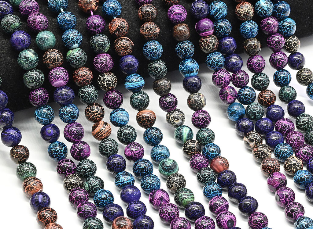 • Бусины из агата "Вены Дракона" шарик 10мм цв.ассорти, 35см, 38 бусин Радуга камня