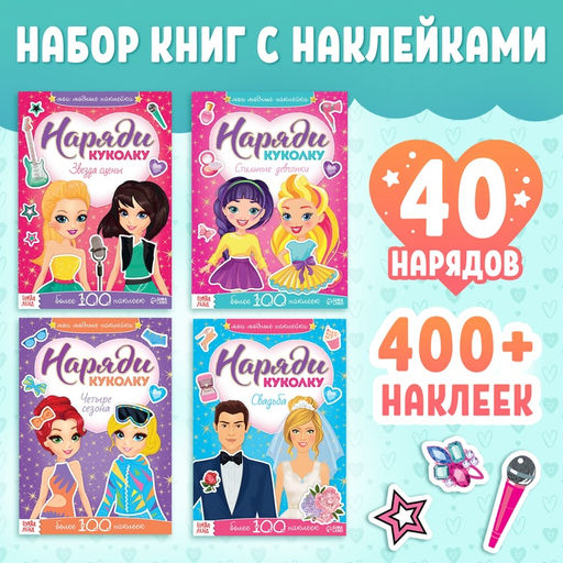 • Книги с наклейками Наряди модную куколку, набор 4 шт. по 12 стр.