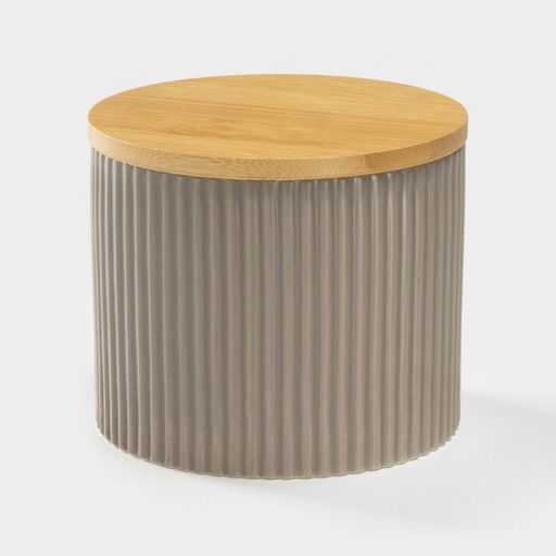 • Банка для сыпучих «Дымка», 850 мл, 12×10 см, с бамбуковой крышкой, керамика, бежевая