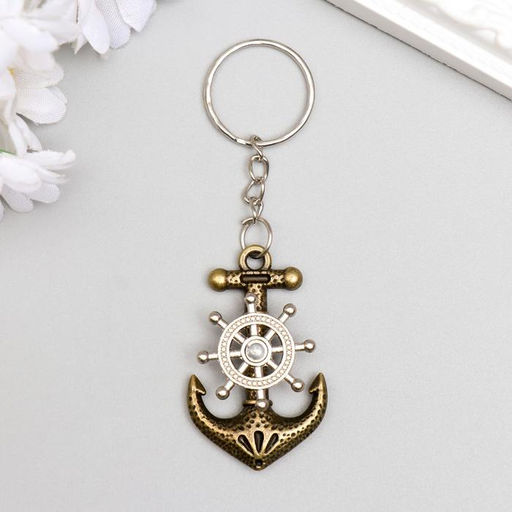 Цена за 12 шт. Брелок металл "Якорь и штурвал" 4,3х2,8 см