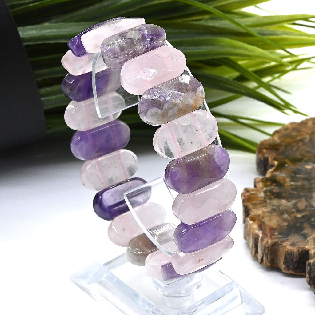 • Браслет из аметиста и розового кварца граненый 20*10мм