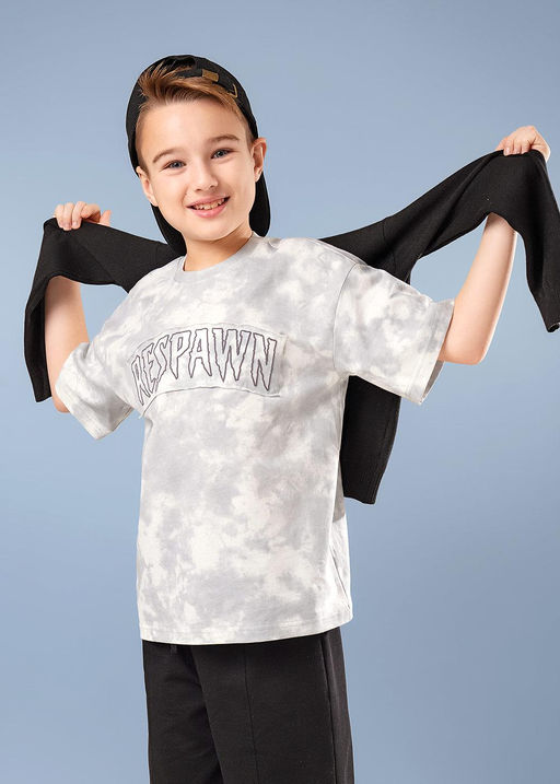 Хлопковая оверсайз футболка с эффектом варки - основа любого гардероба. Эластичная горловина, комфортная посадка по фигуре, принт- аппликация спереди. Сочетай с брюками или шортами из новой коллекции и будь в тренде! Состав: