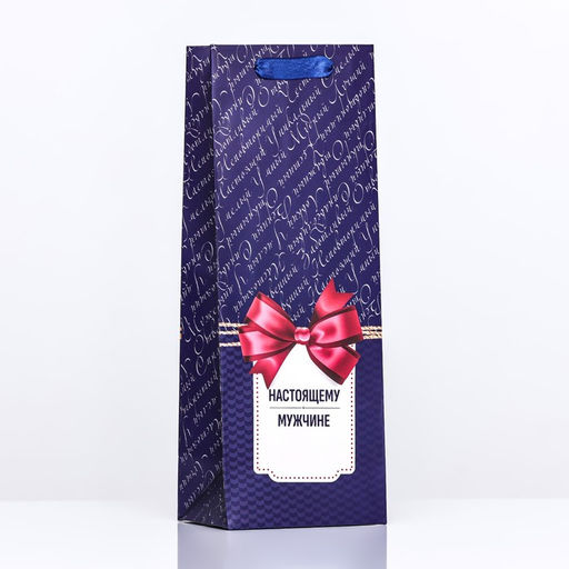 • Пакет подарочный ламинированный под бутылку Настоящему мужчине!, 13?36?10 см