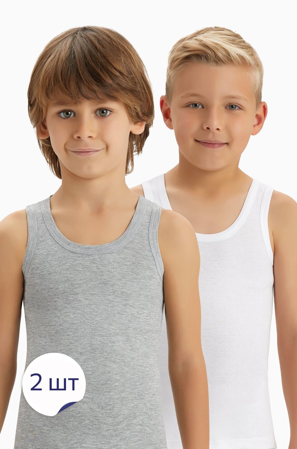 Детские бельевые майки для мальчика и мальчика-подростка выполнены из натурального 100% хлопка. В наборе представлены майки белого и серого цвета, комплект из 2 шт. Прямой крой делает базовую майку для детей идеальной для активного образа жизни.