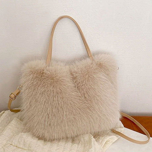 Женская сумка из мягкого пушистого материала ( искуственный мех)  с двумя ручками и дополнительным длинным ремнём через плечо.