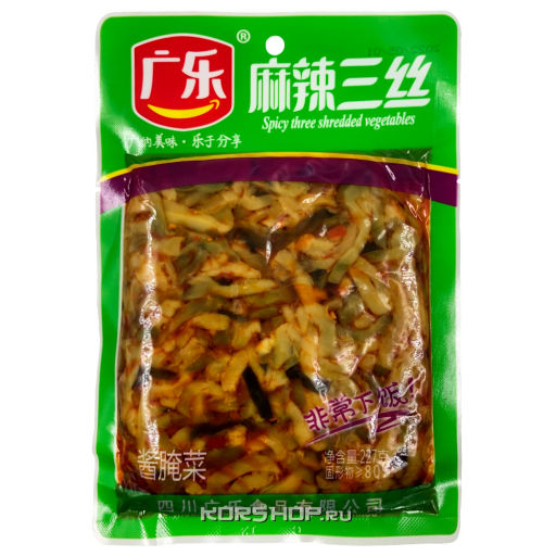 Три вида пряных овощей от торговой марки Guangle это необычная пикантная закуска, которая станет приятным сюрпризом для поклонников китайской кухни. Сочетание клубней горчицы, редиса и ламинарии в пряном соусе на основе растительного масла порадует незабываемым вкусом. Кроме того, это превосходный источник витаминов и клетчатки.
