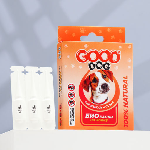 • БИО капли GOOD DOG для щенков и собак от блох и клещей, 3×2 мл