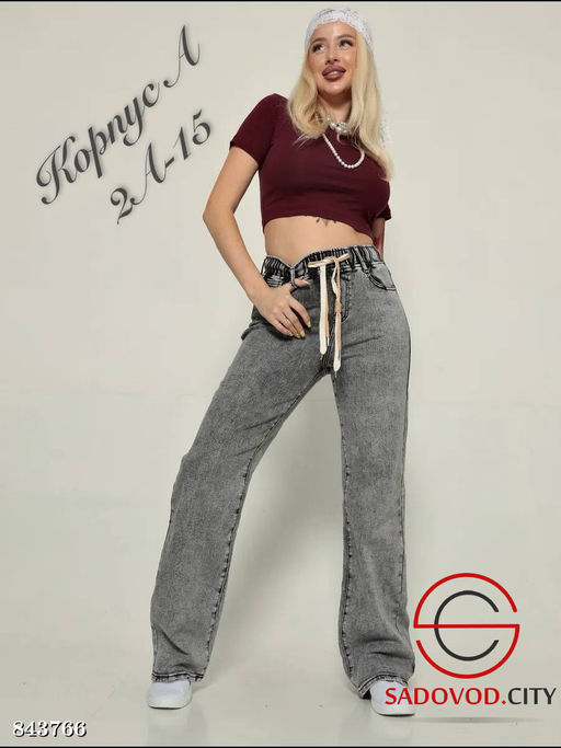 Описание: Джинсы палаццо на резинке. Длина штаны
