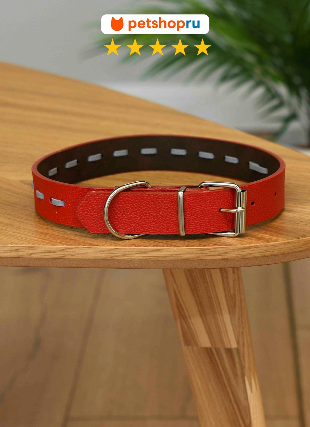 • ВВА Ошейник для собак с декоративной строчкой, 2,5 см, экокожа, цвет в ассортименте PS187
