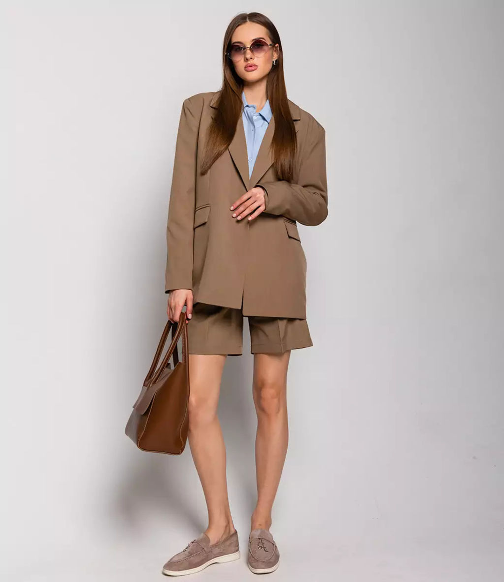 Стиль и удобство сливаются в этом костюме, состоящем из пиджака и длинных шорт. Изготовленный из комбинации натурального хлопка и прочного полиэстера, он обеспечивает мягкость, дышащий комфорт и отличную стойкость к выцветанию. тот костюм - прекрасное решение для стремительной современной жизни, обеспечивая комфорт и элегантность без каких-либо усилий.­