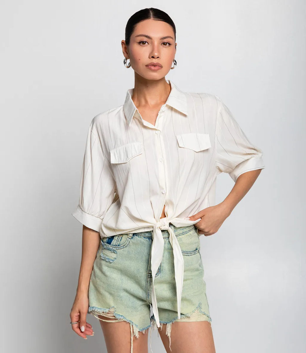 Укороченная рубашка с тонкой полоской это тот элемент гардероба, который добавляет элегантности и стиля каждой женщине. Этот актуальный и модный предмет одежды поможет подчеркнуть уникальность и изящество фигуры, создавая непринужденный, но при этом утонченный образ. Модель выполнена из 100% полиэстера, что обеспечивает великолепную яркость цветовых оттенков и долговечность. Полиэстер это материал, который не только легко стирается, но и прекрасно сохраняет свою форму, благодаря чему рубашка надолго останется в идеальном состоянии, даже после множества стирок. Эта рубашка идеально подходит как для офисного стиля, так и для повседневного ношения. Комбинируйте её с брюками или юбками, дополняя образ стильными аксессуарами. Тонкая полоска придаёт ей оригинальный вид и делает модель универсальной подходящей для разных случаев. Обратите внимание на привлекательный цвет и текстуру материала. Он является насыщенным и полностью соответствует фотографиям на сайте, что позволит вашим покупателям быть уверенными в своём выборе. Мы также предусмотрели таблицу размеров, чтобы покупательницы могли легко подобрать идеальный размер для себя. Предложенная нами цена является доступной и разумной, что позволит вам выгодно предложить эту модель в вашем магазине. Подарите своим клиентам возможность быть стильными и уверенными в себе с этой укороченной рубашкой, которая добавит нотки шика и легкости в каждый образ! Рост модели 164 см., 83-61-89. -- Характеристики -- Цвет: кремовый Пол: Женский Страна производитель: Китай Сезон: Лето Материал: Полиэстер