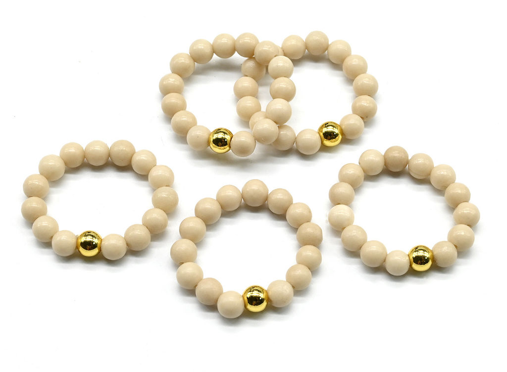 Кольцо выполнено из шариков, закрепленных на прочной силиконовой резинке, что обеспечивает удобную посадку на палец.