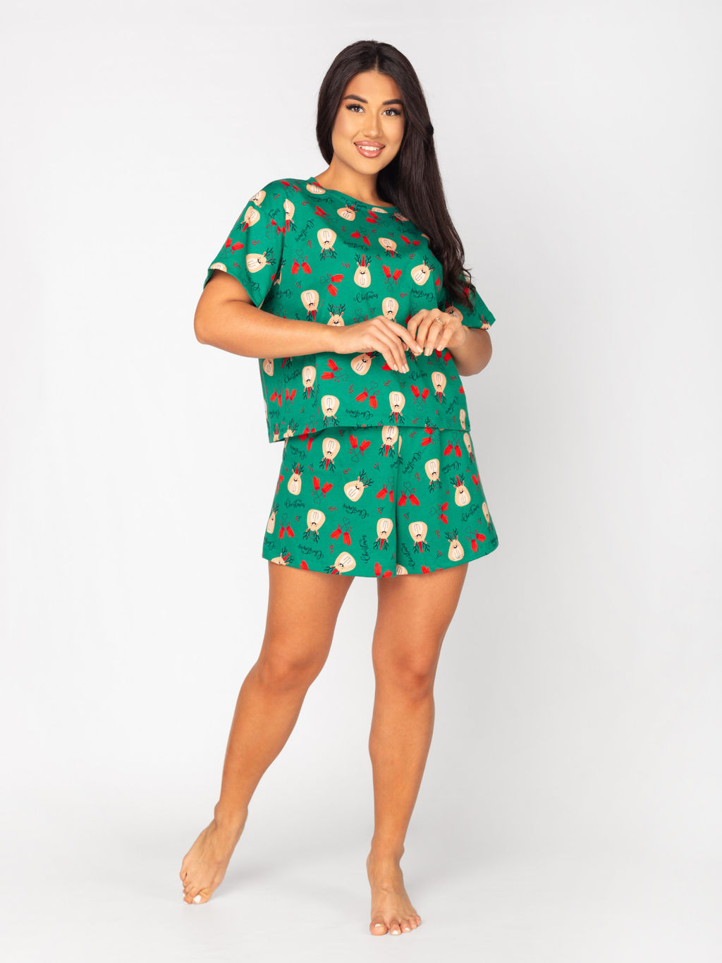• Пижама женская кулирка с шортами "КРИСТИ" ЗЕЛЕНЬ