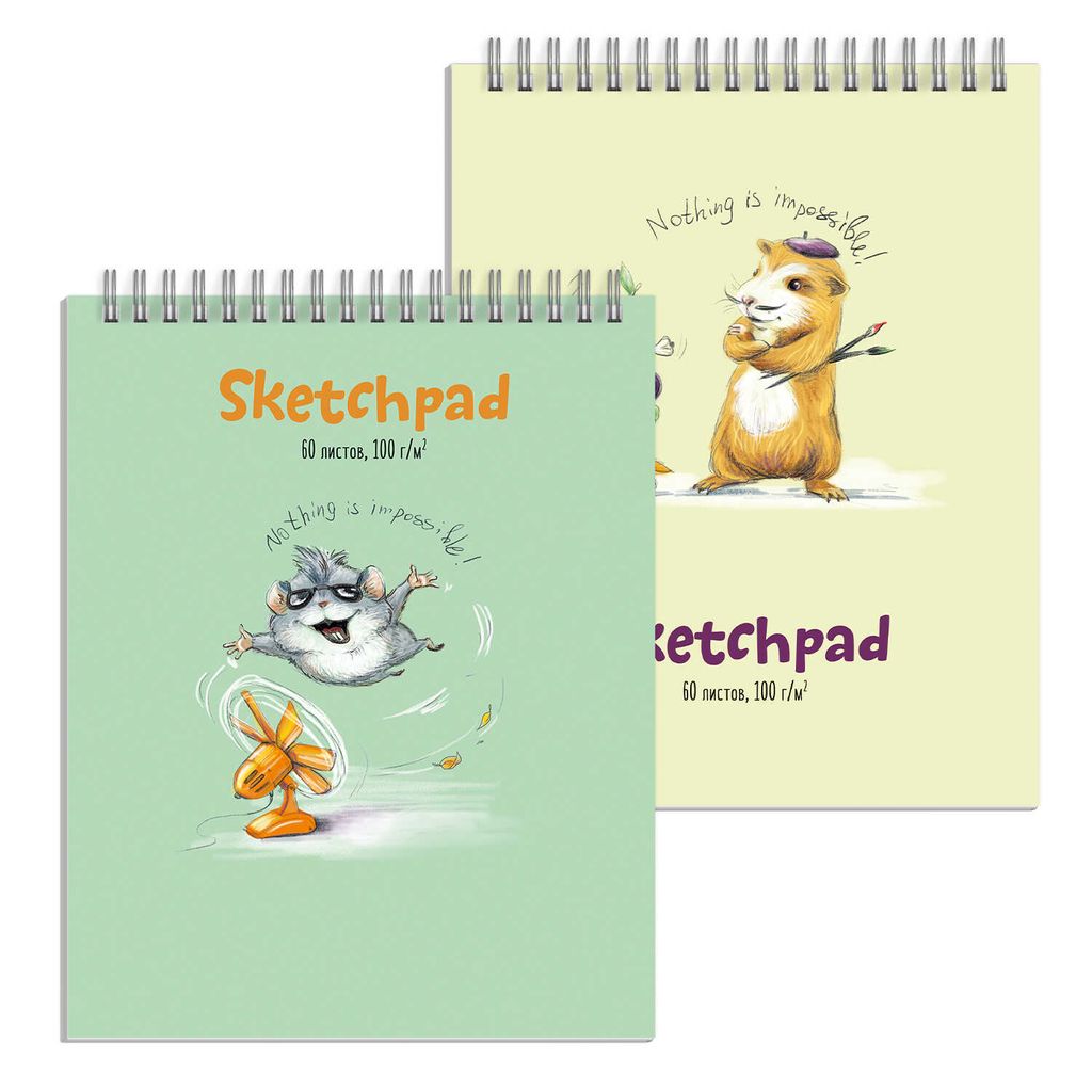 Скетчпад А5 148х210 мм, 60 л, блок - белый офсет 100 г/м2, арт. 57802 ВЕСЁЛЫЕ ЖИВОТНЫЕ твёрдый переплёт на гребне, матовая ламинация,