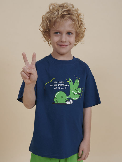 Маркированный товар Состав: 100%хлопок Футболка для мальчика оверсайз модель большого объема на каждый день, для дома и прогулок. Легкая трикотажная футболка подходит в качестве нательного белья и многослойных образов. Базовая футболка на любой сезон. Изделие сшито из 100% натурального хлопка, мягкий материал приятно прилегает к телу, не вызывая дискомфортных ощущений во время движений. Хлопок хорошо пропускает воздух, обеспечивает гигроскопичность. Материал не задерживает влагу - ребенок не потеет.Оптимальный размер горловины удобен в носке - позволит ребенку с легкостью надевать и снимать ее самостоятельно. Футболка для мальчика прослужит долго и будет радовать износостойкостью. Модель представлена в цвете морской волны. Синяя футболка для мальчика - красивый вариант на любой выход, по переду украшена надписью "My moods are unpredictable and so I am" перевод "Мои настроения непредсказуемы, как и я сам". Свободная футболка для мальчика подростковая рассчитана на возраст садика и школы. Размерная линейка: 1 (86); 2 (92); 3 (98); 4 (104); 5 (110); 6 (116); 7 (122); 8 (128); 9 (134); 10 (140); 11 (146). Крутая футболка для мальчика отличный подарок для сына, внука, братика, племянника, крестника! Выбирайте нужный размер по таблице размеров на фото. Цвет товара на экране вашего устройства может отличаться от цвета изделия вживую.