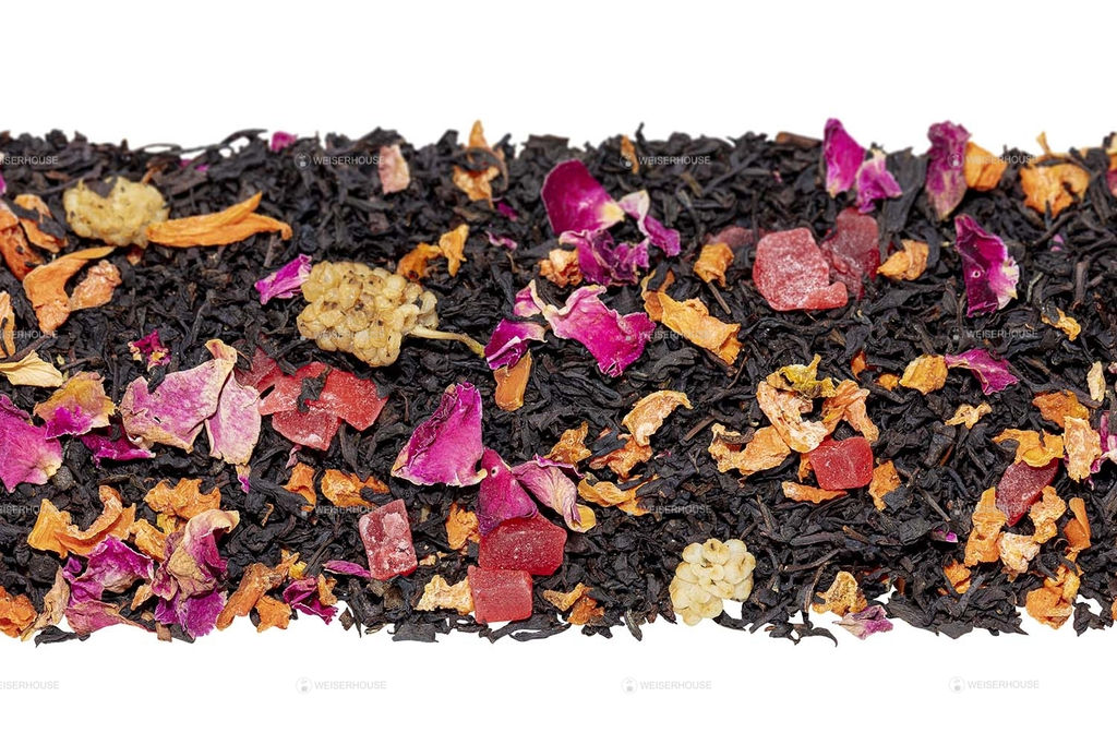 Индийский черный чай с плодами тутовника, кусочками папайи и моркови, лепестками розы. Насыщенный и бархатистый настой с ярким вкусом и ароматом со сладковатыми нотками спелой шелковицы.