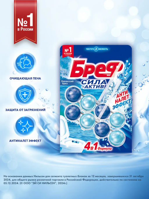 • БРЕФ чист.блок д/унитаза 2х50гр СИЛА-АКТИВ Океанский бриз