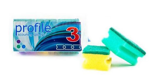 • Губка бытовая с чистящим слоем "Профиль-3" 3шт. 8х6х4см (гх017)