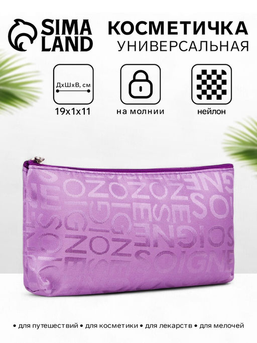 Для кого: Для женщины. Для кого: Для девочки. Длина, см: 19. Ширина, см: 1. Высота, см: 11. Количество отделений: 1. Вид застёжки: Молния. Тематика: Надписи, цифры, буквы. Рисунок: Да. Особенности косметичек: С рисунком. Особенности косметичек: Цветные. Бесплатная доставка: Да. Размеры товара: 1/11/19.