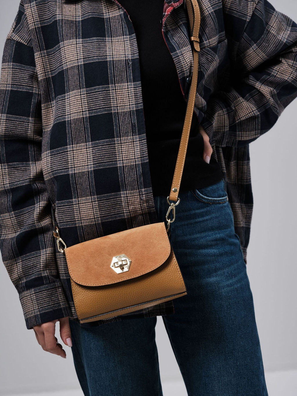 Стильная сумка на плечо кросс-боди Deboro 31033 глина станет отличным дополнением вашего образа и надежным аксессуаром для повседневной жизни. Изготовленная из натуральной кожи и замши, она обладает высокой прочностью и долговечностью. Эта женская сумка выполнена в аккуратном и элегантном дизайне, что делает её универсальным вариантом как для ежедневного использования, так и для особых случаев. Сумка кросс-боди легко носится через плечо, что обеспечивает комфорт во время ношения. Наличие регулируемого ремня добавляет удобства, позволяя вам подстроить его под свои предпочтения. Водонепроницаемая подкладка сбережет изделие от повреждений. Удобный замок обеспечивает быстрый доступ к нужным вещам. Два отделения и внутренний карман позволяют удобно расположить вещи. Использование натуральных материалов гарантирует не только стильный внешний вид, но и функциональность. Эта сумка DEBORO среднего размера позволит вам выглядеть безупречно в любых обстоятельствах. Если вы ищете идеальный аксессуар для создания образа или подарка близкому человеку, эта модель точно вас не разочарует. -- Характеристики -- Цвет: глина Материал: Натуральная кожа;Замша натуральная Бренд: Deboro Тип: Сумка на плечо Страна-изготовитель: Россия Высота, см: 13 Ширина, см: 19 Глубина, см: 8 Материал подкладки: Хлопок Количество внутренних отделений: 1 Тип застежки: Замок-вертушка Формат А4: не вмещает Длина плечевого ремня, см: 116 Вес товара, г: 310 Ручки: На плечо;Одна лямка;Плечевой ремень Пол: женская коллекция Группа товара: Сумки