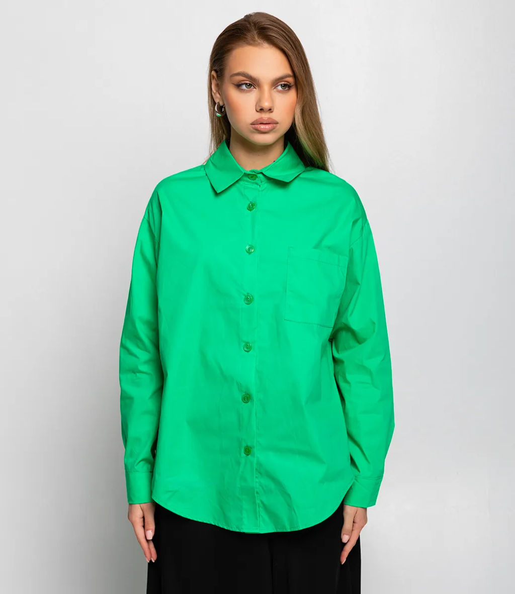 Свободную рубашку на пуговицах с удлиненной спинкой можно носить по верх футболок и кроп-топов и как базовый элемент гардероба. Модель выполнена из прочного хлопка с добавлением полиэстера, благодаря чему рубашка отлично держит форму и обладает высокой износостойкостью. Рост модели 168, 89-63-90.­
