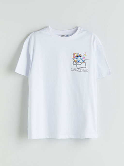 Bisiklet Yaka Lilo ve Stitch Bask?l? K?z ?ocuk Ti??rt