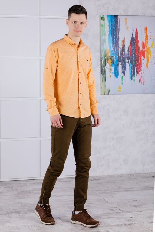 Джоггеры бренда AIGULA выполнены из высококачественного хлопкового полотна с добавлением небольшого количества спандекса. Материал приятный к телу, износостойкий, не вытягивается и не сковывает движения. Низ брюк отделан эластичными манжетами с молнией. Джоггеры удобны и комфортны в повседневной носке и оснащены множеством карманов: два спереди для рук, два на внешней стороне бедра, два прорезных с клапаном сзади. При производстве продукции используется уникальная технология окрашивания полотна. Окрашивание производится после пошива, что обеспечивает более долговечный цвет изделия во время носки и последующих стирок. Джоггеры отлично сочетаются с рубашками в стиле Casual или с футболками для создания образа спорт-шик. В качестве обуви подойдут любые спортивные ботинки. -- Характеристики -- Код товара: 62045 Артикул: 1.C-83165-G28 Сезон: демисезонные Низ брюк: с резинкой и молнией Посадка: узкие Цвет: хаки Фактура: однотонная Комплектация: брюки Пояс: без резинки Тип карманов: прорезные Рост модели на фото: 186 см Размер на модели: 31 Состав: хлопок-97%, спандекс-3%