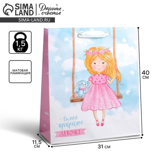 Пакет подарочный ламинированный, упаковка, «Самой прекрасной девочке», L 40 х 31 х 9 см