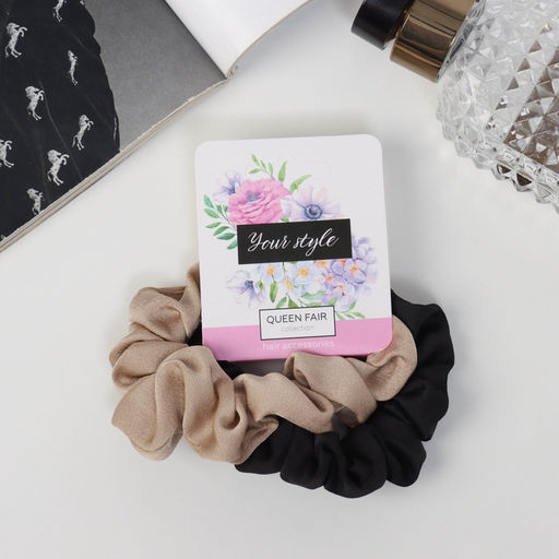 Цена за 3 шт. Резинки для волос QF «Орбита», набор 2 шт., классик, 8 см, чёрные, бежевые