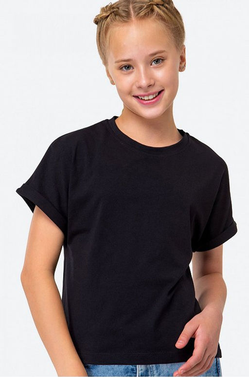 Черная футболка для девочек и девочек подростков выполнена из трикотажной ткани кулирная гладь. Базовая футболка на лето то, что нужно для создания запоминающегося образа!