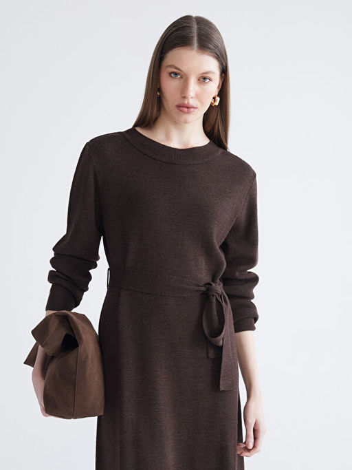• Bisiklet Yaka Beli Ku?akl? Triko Elbise