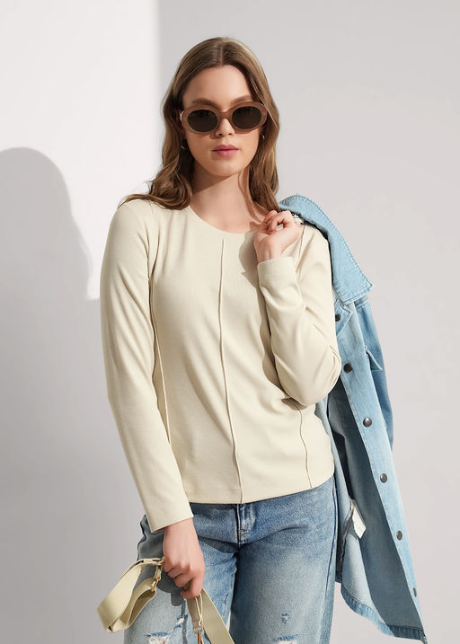 Фуфайка прямого силуэта из поливискозного трикотажного полотна кашкорсе. Втачной длинный рукав. Округлая горловина с обтачкой. По переду декоративные защипы. 68%ПЭ27%Вис 5%Эластан