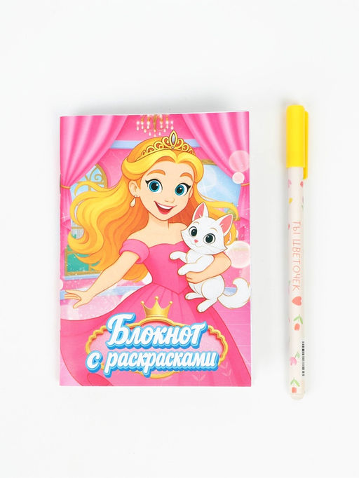 Подарочный набор, блокнот раскраска А6, 32 л., ручка пиши-стирай «Принцесса»