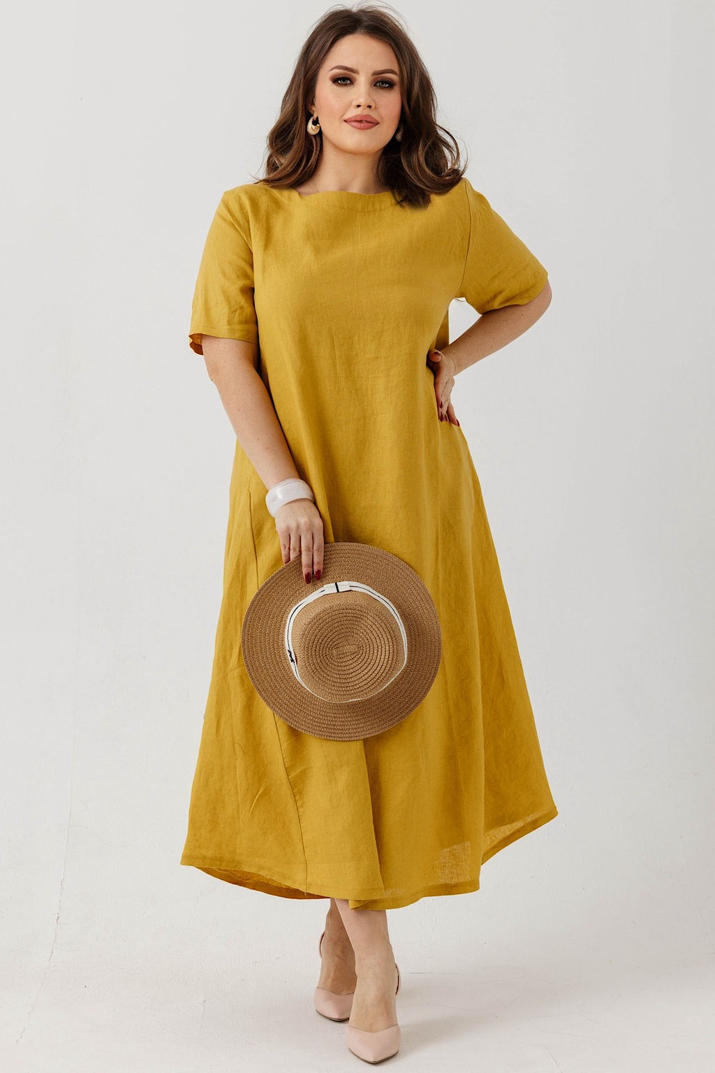 Летнее женское платье  с карманами из 100% льна. Женское платье   идеальный выбор для  женщин, стремящихся подчеркнуть свою элегантность и стиль в любой ситуации. Это платье прекрасно подходит как для повседневных образов, так и для более торжественных мероприятий: вечеринок, праздников и офисных встреч. Свободный крой не стесняет движений, обеспечивая комфорт на протяжении всего дня.Модель платья- А силуэт, что делает изделие универсальным.­