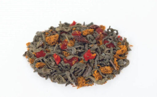 Зеленый чай, облепиха, ягода клубники, ягода вишни, ароматизатор Клубника.