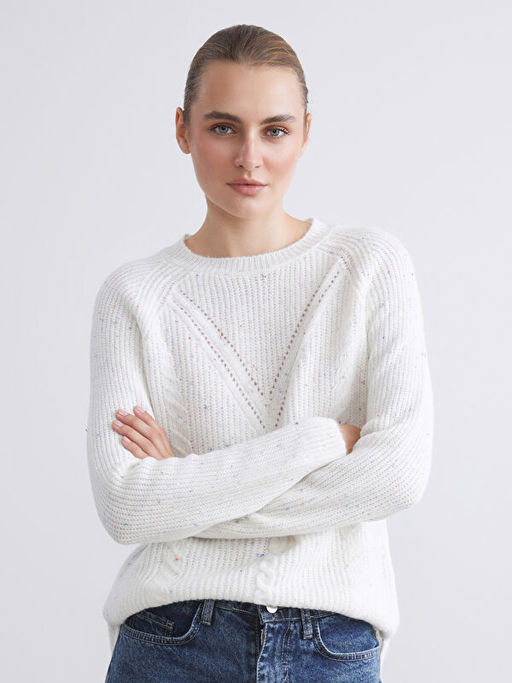 • Bisiklet Yaka Kendinden Desenli Kad?n Triko Kazak