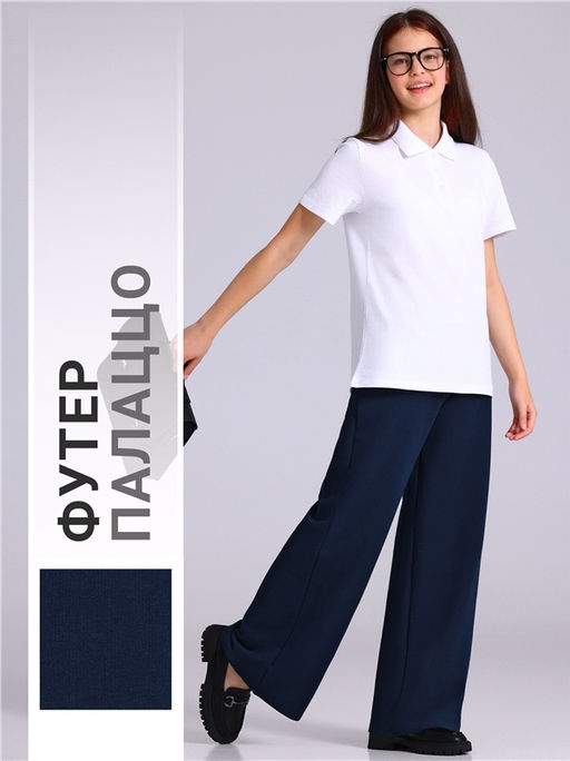 Уценка брюки,хлопок 95% + лайкра 5%,футер / хлопок 95% + лайкра 5%,темно-синий77 / - / - / - / - / -,Широкие брюки палаццо для девочек выполнены из футера - плотного хлопкового полотна с лайкрой. Изделие без карманов на удобном эластичном поясе. Отличный вариант для школы и не только! Уход: только машинная стирка (руками не стирать!) при температуре 40 градусов, без предварительного замачивания. Ассортимент осенне-зимнего периода.